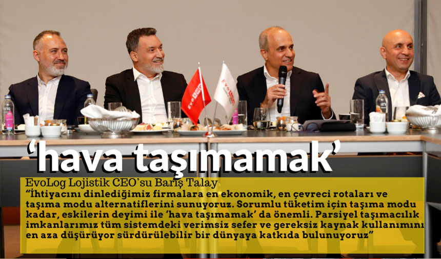 EvoLog olarak tedarik zincirinin sürdürülebilir hale gelmesinde önemli bir rol oynadıklarını belirten EvoLog Lojistik CEO’su Barış Talay, “’Sorumlu tüketim’ ve ‘hedefler için ortaklıklar’ sürdürülebilir kalkınma için en çok öne çıkardığımız amaçlar. Bizler kendimizi sanayicimizin, dış ticaret firmalarımızın çözüm ortağı olarak görüyoruz. İhtiyacını dinlediğimiz firmalara en ekonomik, en çevreci rotaları ve taşıma modu alternatiflerini sunuyoruz. Sorumlu tüketim için taşıma modu kadar, eskilerin deyimi ile ‘hava taşımamak’ da önemli. Parsiyel taşımacılık imkanlarımız tüm sistemdeki verimsiz sefer ve gereksiz kaynak kullanımını en aza düşürüyor sürdürülebilir bir dünyaya katkıda bulunuyoruz” dedi.