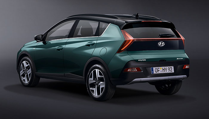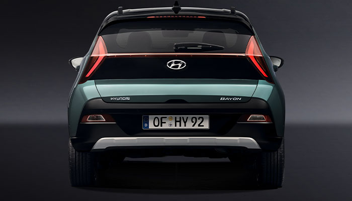 Arka stop lambaları ok şeklinde verilirken orta kısımda siyah bir bölüme yer verilmiş. Bu açısal çizgiler ve siyah parça sayesinde hacim vurgulanırken aynı zamanda bagaj ve tampon arasındaki ters ve eğik geçişler de görsel olarak benzersiz ve etkileyici bir tasarım sunuyor. LED stop lambaları ve gri renkli difüzör de bu canlı bölümü destekleyen bir diğer unsur. SUV gövde tipine uygun bir şekilde geliştirilen alüminyum alaşımlı jantlar, BAYON’da donanım seviyesine göre 15, 16 ve 17 inç çapında veriliyor. Hyundai BAYON, toplam dokuz dış renk seçeneği ile üretim bandına girecek. Ayrıca, isteğe bağlı olarak iki tonlu tavan rengiyle de satın alınabilecek.