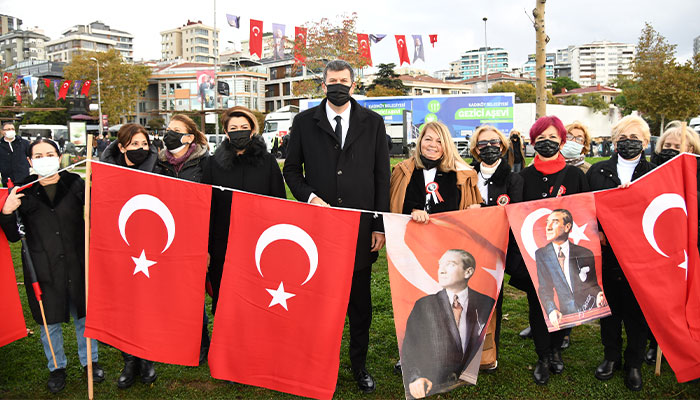 Ata’ya Saygı Zinciri’ne katılan Kadıköy Belediye Başkanı Şerdil Dara Odabaşı, “Bugün Atamızı kaybedişimizin 83’üncü yıl dönümü. Bugün Kadıköy’ün birçok yerinden, bütün mahallelerinden Kadıköylüler burada, Ata’ya saygılarını gösteriyorlar. Ata’ya saygı zinciri her ne kadar Kadıköy sınırları içinde olsa da Bostancı’yı geçip Maltepe’ye kadar ulaşıyor. Pandemi kurallarını gözeterek bir buçuk metrelik aralıklarla yurttaşlarımız eskiden el ele tutuşuyorlardı şimdi de bayrakları tutarak zinciri oluşturdular. Cumhuriyetimizin kurucusu, Büyük Önder Mustafa Kemal Atatürk’ü, sonsuz saygı ve minnetle anıyorum.” diye konuştu.
