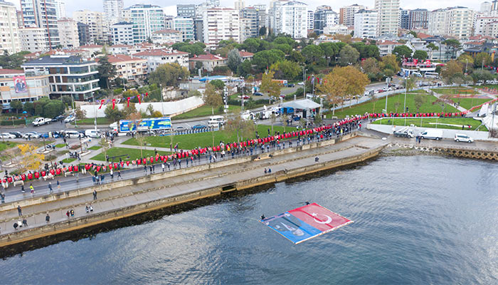 Kadıköy Belediyesi’nin her sene “10 Kasım Atatürk’ü Anma” programı kapsamında düzenlediği “Ata’ya Saygı Zinciri” bu yıl da sosyal mesafe kurallarına uygun olarak gerçekleşti. Yurttaşlar, Fenerbahçe Orduevi ile Bostancı sahil arasında oluşturulan 6,5 kilometrelik zincirin halkalarını, aralarında 2 metre mesafe bırakarak oluşturdular. Saat 9’u 5 geçe sirenlerin çalmasıyla birlikte saygı duruşuna geçildi. Kadıköy Belediye Başkanı Şerdil Dara Odabaşı ve eşi Rojvan Odabaşı’nın katıldığı tören İstiklal Marşı’nın söylenmesinin ardından sona erdi.