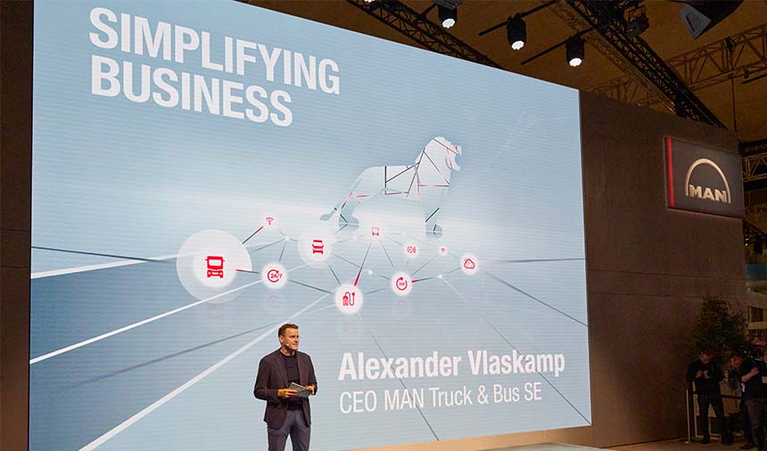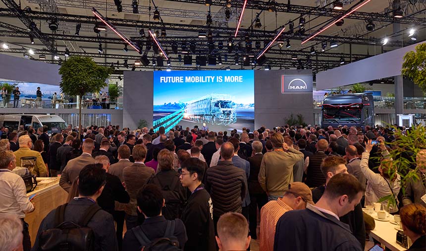 MAN IAA Transportation 2024 fuarında, karayolu yük taşımacılığının karbonsuzlaştırmaya yönelik araçları ile ilgi odağı oldu. Şirket, inovatif ve sürdürülebilir taşımacılık çözümlerini temsil eden elektrikli, hidrojenli ve son teknoloji dizel tahrikli kamyonlarını Salon 12, Stand C20’de sergiledi. “Simplifying Business” sloganı altında elektrikli, hidrojenli ve dizel teknolojili tüm kamyon tahrik sistemi portföyünü ilk kez sergileyen MAN, ayrıca elektrikli kamyonu eTGL’nin de dünya prömiyerini yaptı.