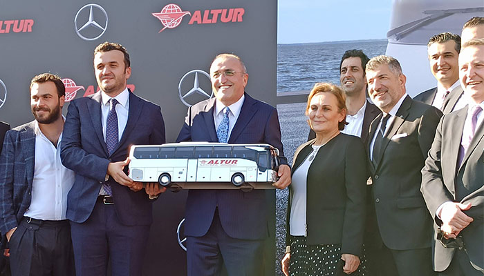 4 Kasım Perşembe günü, Altur Turizm’in İstanbul Yenibosna’da yer alan genel müdürlük tesislerinde gerçekleşen teslimat töreninde Mercedes-Benz Türk Otobüs Pazarlama ve Satış Direktörü Osman Nuri Aksoy, Otobüs Filo Satış Grup Müdürü Burak Batumlu, Ali Osman Ulusoy Şirketler Grubu Yönetim Kurulu Başkanı Emriye Hülya Ulusoy, Hassoy Motorlu Vasıtalar Genel Müdürü Selim Saral ve Otobüs Satış Müdürü Cenk Soydan; araçları Altur Turizm Yönetim Kurulu Başkanı Abdurrahim Albayrak, Yönetim Kurulu Başkan Yardımcısı Hikmet Albayrak, Yönetim Kurulu Üyesi Yasin Albayrak, Altur Turizm Genel Müdürü Halil Kemal, Genel Müdür Yardımcıları Engin Koşan ve Süleyman Tuncer, Altur Turizm Garaj Müdürü Yusuf Yazıcı ve Altur Turizm Destek-Kademe Müdürü Tacettin Işık’a teslim etti.