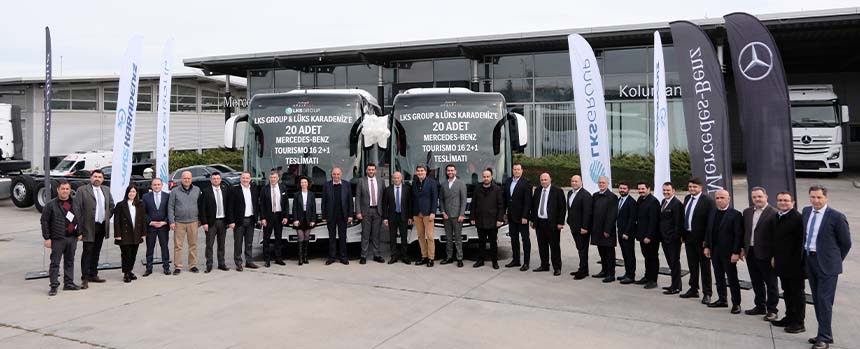 Şehirler arası ve turizm yolcu taşımacılığı alanlarında faaliyet gösteren LKS Group – Lüks Karadeniz, Mercedes-Benz yıldızıyla büyümeye devam ediyor. Araç parkına yaptığı yatırımlara son sürat devam eden LKS Group, son olarak Mercedes-Benz Türk’ten aldığı 20 adet Tourismo 16 RHD 2+1 otobüsü de ekleyerek filosundaki Mercedes-Benz marka araç sayısını 90’a çıkardı. Mercedes-Benz Türk Hoşdere Otobüs Fabrika’sında üretilen 20 adet 2023 model Tourismo 16 RHD 2+1 model otobüs için Koluman Motorlu Araçlar Gölbaşı lokasyonunda teslimat töreni düzenlendi.