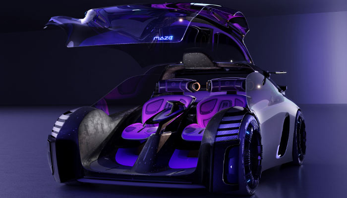 SAIC Design Advanced London ekibi tarafından geliştirilen MG MAZE, İngiltere merkezli tasarım stüdyosunun üçüncü yıl dönümüne özel olarak tasarlanmasıyla dikkat çekiyor. Kompakt bir forma ve futuristik tasarıma sahip olan konsept otomobil, tamamen panoramik bir çevre manzarası sunan açık kokpit düzeni ile kullanıcılarına gerçek bir oyun deneyimi hissiyatı sunuyor.