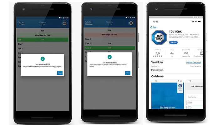 - Telefona kolayca indirilebilecek TÜVTÜRK Uygulaması ile araç sahipleri, daha önce araç muayene istasyonlarındaki kiosklardan alabildikleri araç muayene sıra numaralarını akıllı telefonları aracılığıyla alabiliyor. TÜVTÜRK Uygulaması, Google Playstore ve App Store’dan ücretsiz olarak indirilebiliyor.