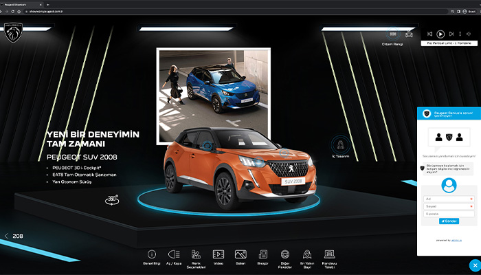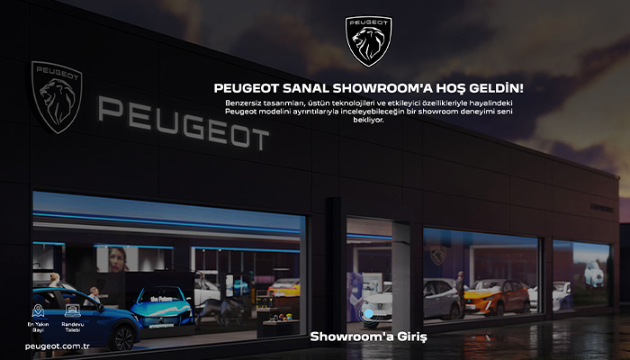 Türkiye’nin neresinde olursa olsun Peugeot markasına erişmek isteyen müşteriler, showroom.peugeot.com.tr adresinden araçların 360 derece görsellerine, iç mekân detaylarına, farklı renklerine ve teknik özelliklerine görüntülü olarak ulaşabiliyorlar. Online showroom ile test sürüşü randevusu da alınabiliyor.