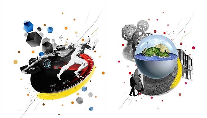 İki yazarın metinlerine renkli, keyifli ve dinamik stiliyle daima şaşırtmayı, eğlendirmeyi ve etkilemeyi başaran Türk sanatçı Selman Hoşgör’ün sekiz illüstrasyonu eşlik ediyor. Panellerden her biri, Pirelli’yi tanımlayan anahtar kelimelerden birini içeriyor: Yapay Zeka, Değişiklikler, Geleceğin Şehri, Bağlantı, Esneklik, Akıllı mobilite, Sürdürülebilirlik ve Hız.