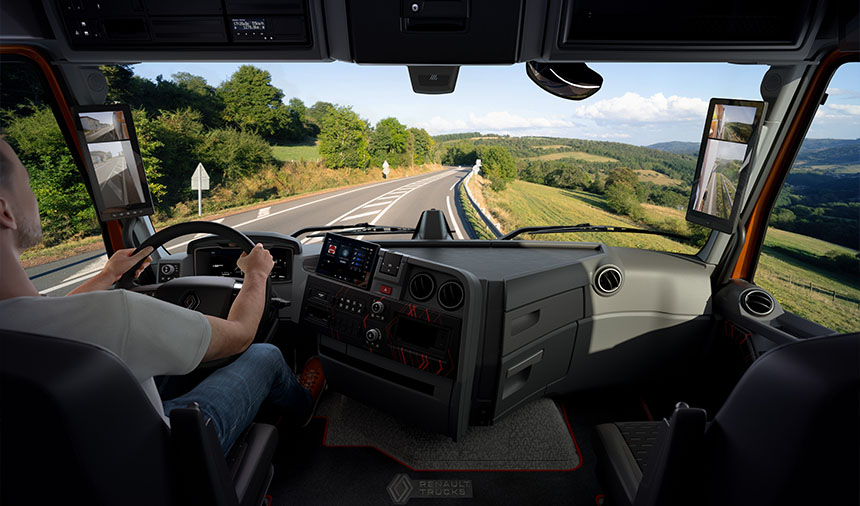 Ayrıca, Renault Trucks T, T High, C ve K modellerinde dikiz aynaları yerine isteğe bağlı olarak kameralar sunulabiliyor. Bu da aerodinamiği daha da iyileştirerek yakıt tüketimini azaltmaya yardımcı oluyor. Katlanabilir kanatlara yerleştirilen bu arka görüş kameraları, aracın çevresini görüntüleyen ve gece görüşünü kolaylaştırmak için kızılötesi moda sahip iki kabin içi ekrana bağlı bulunuyor.
