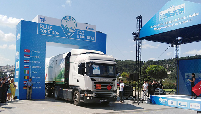 Gazprom sponsorluğunda Haliç Kongre Merkezinde Mavi Koridor Rallisi’ne katılan doğalgazlı araçların sergilendiği etkinliğe Scania, 13 litrelik 410 beygir gücündeki CNG’li aracı ile katıldı.
