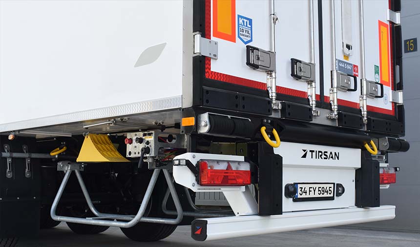 Operasyonel kolaylık için çift boru kilit sisteminin standarda alındığı Tırsan Buz Frigo ürün ailesi, dikey kauçuk takozlar ve galvanizli paslanmaz çelik darbe emici rampa dayamalar ile yükleme ve boşaltma operasyonlarında tam koruma sağlıyor.