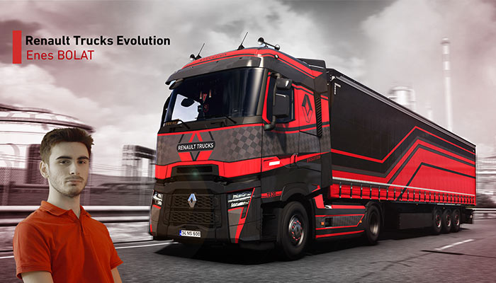 Enes Bolat; “Euro Trucks Simulator 2’den Renault Trucks araçlarına aşinaydım ama yeni modellerinin lansmanını ETS2 ile yapmasının ardından markaya olan ilgim arttı. T ve T High Evolution araçlarının estetiğini ve özellikle yeni far tasarımı çok beğendim. Renault Trucks tasarım direktörünün konuşması da beni yarışmaya katılmaya motive etti” diye açıkladı. Birinciliği kazanacağını asla hayal etmediğini belirten Enes Bolat; “Uzun yıllardır oynamaktan zevk aldığım bu oyunda uluslararası bir yarışmayı kazanmak ve tasarımımın resmi olarak oyuna dahil edilmesi inanılmaz bir mutluluk” diyerek heyecanını ifade etti.